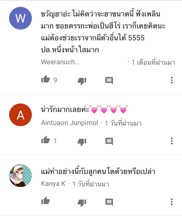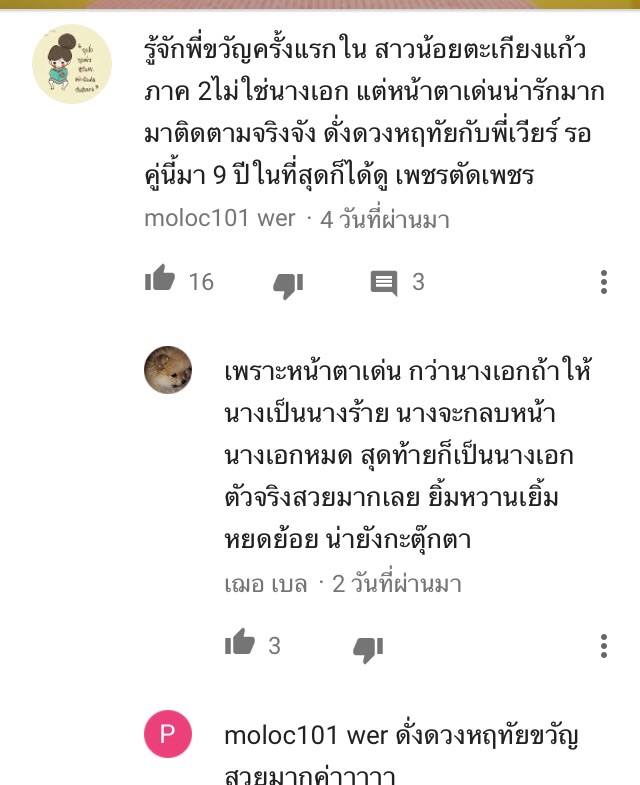 นี่เป็น ตย เพียงเล็กน้อย จาก youtube ที่มีคนแสดงความคิดเห็นถึงขวัญ