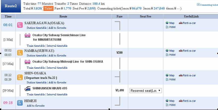 (กำหนดการเดินทางจากที่พักไปปราสาทฮิเมจิประมาณชั่วโมงนิดๆ ค่ะ)