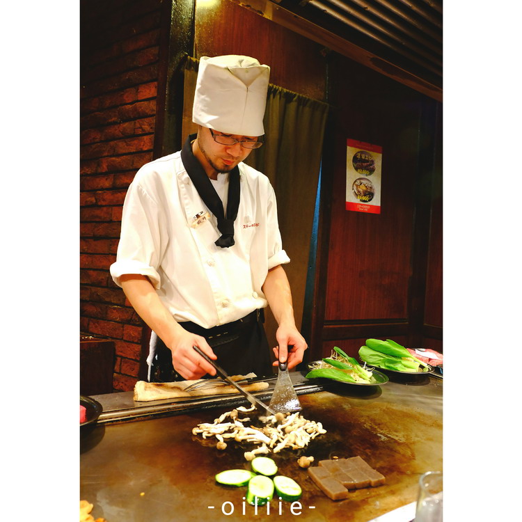 (เริ่มต้นเค้าจะผัดพวกผักต่างๆ ให้เราก่อนค่ะ / ผัดกันตรงหน้าให้เห็นๆ กันจะๆ ไปเลย)