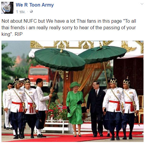 เพจและแฟนเพจ FB สโมสรในอังกฤษร่วมแสดงความไว้อาลัย...