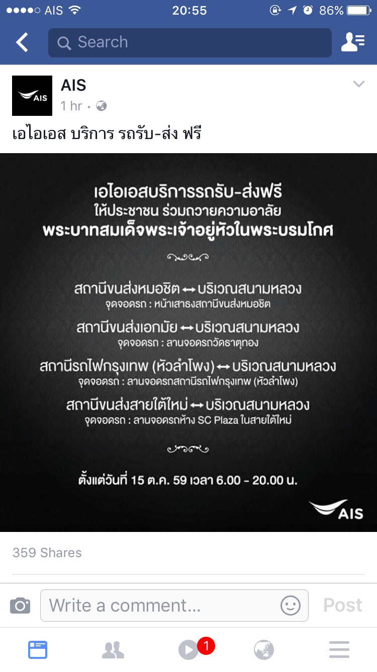 AIS บริการรถรับส่งฟรี ให้ประชาชนร่วมถวายความไว้อาลัยพระบาทสมเด็จพระเจ้าอยู่หัวในพระบรมโกศ