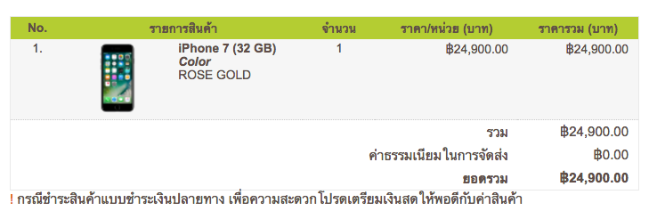 ผมซื้อiphone 7 ล่วงหน้า 32 GB ราคา 24900 บาท เวลาช่วงบ่าย ๆ