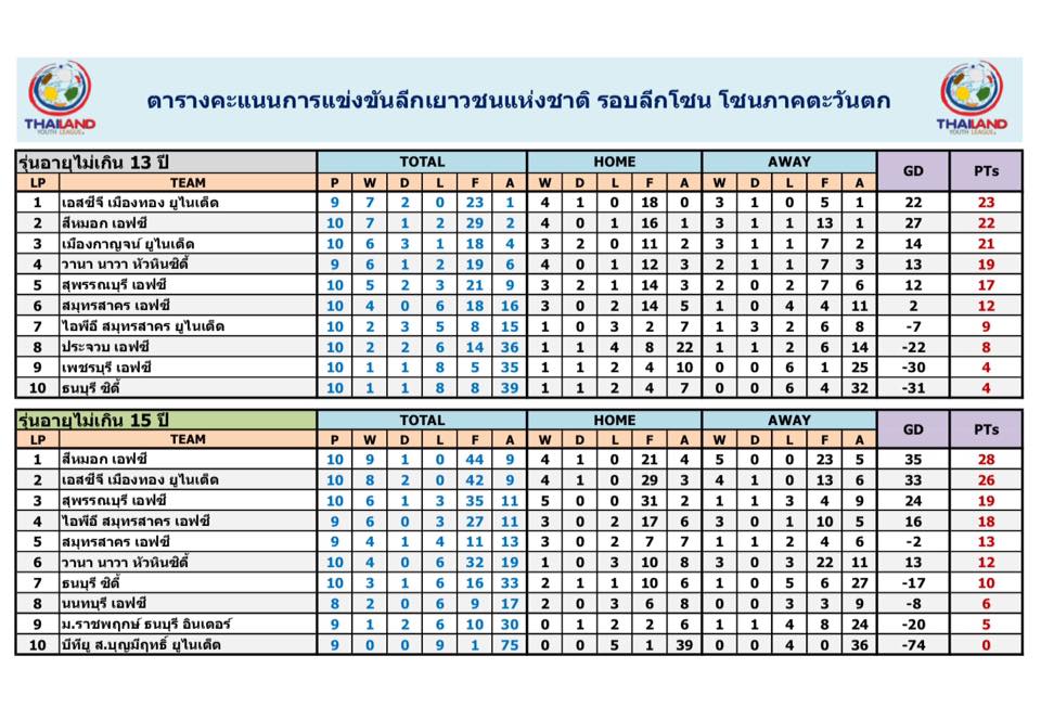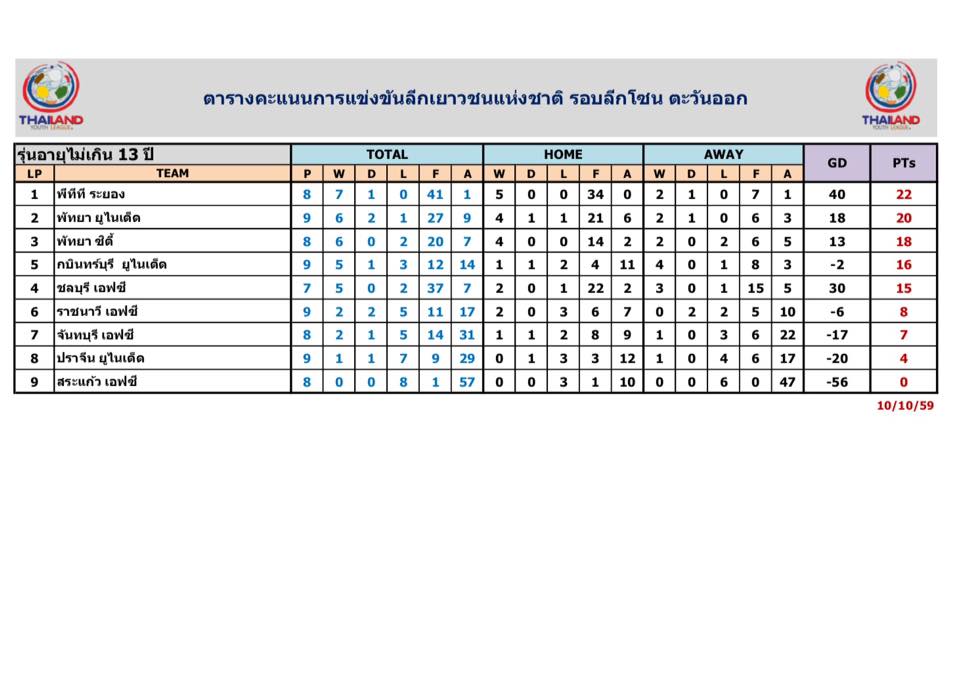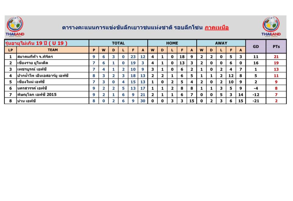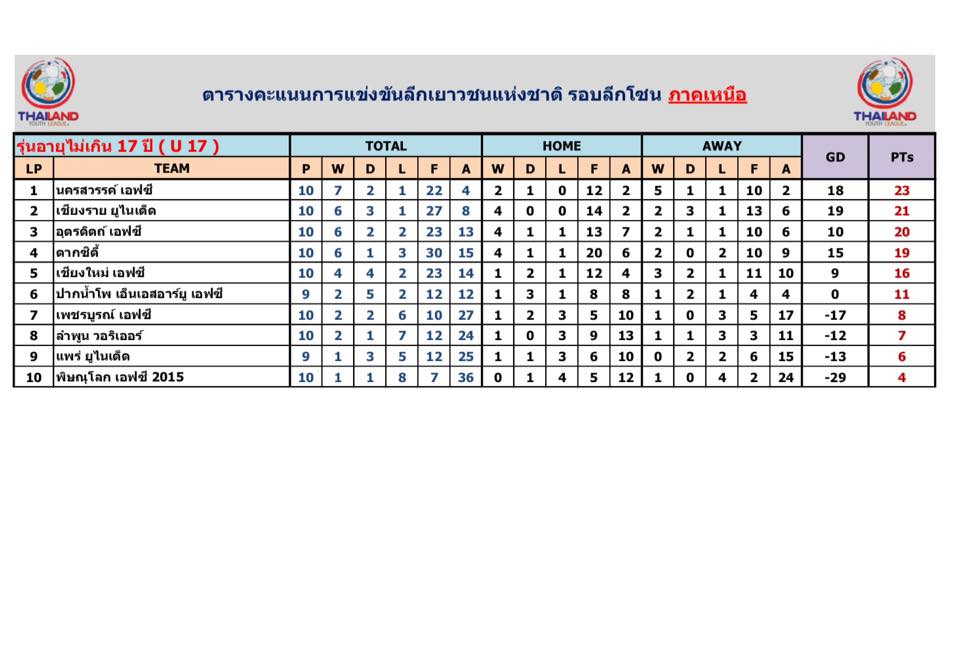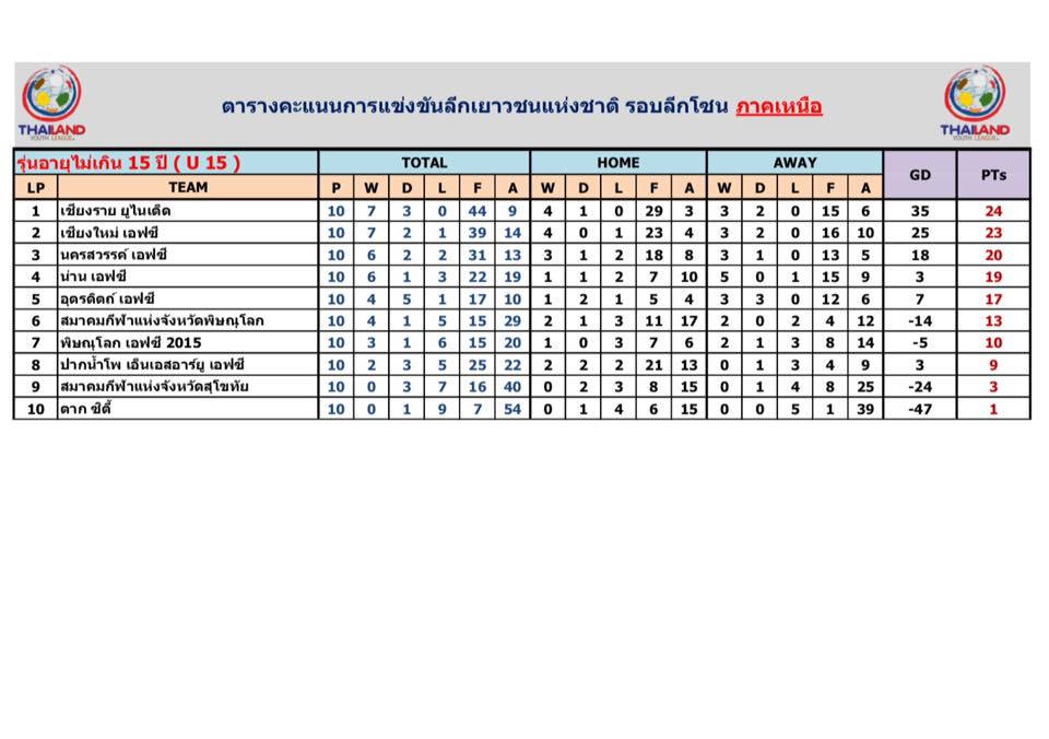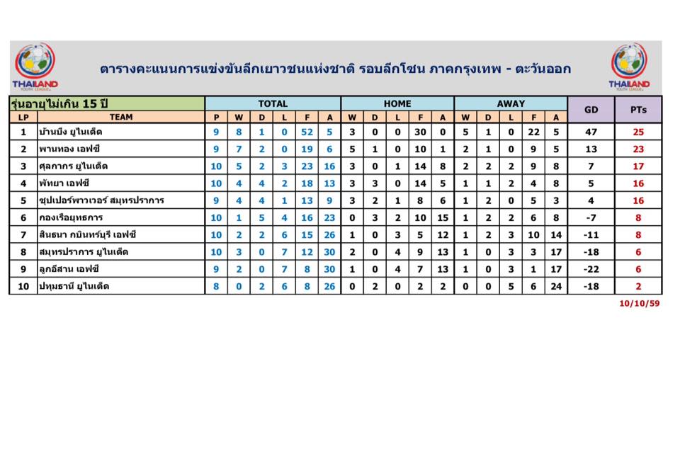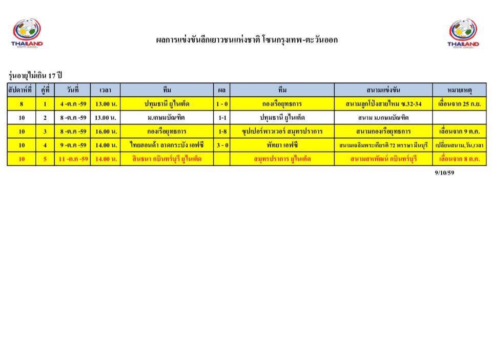 อัพเดตข่าวเกี่ยวกับฟุตบอลลีกเยาวชนแห่งชาติ 15 ตุลาคม 2559
