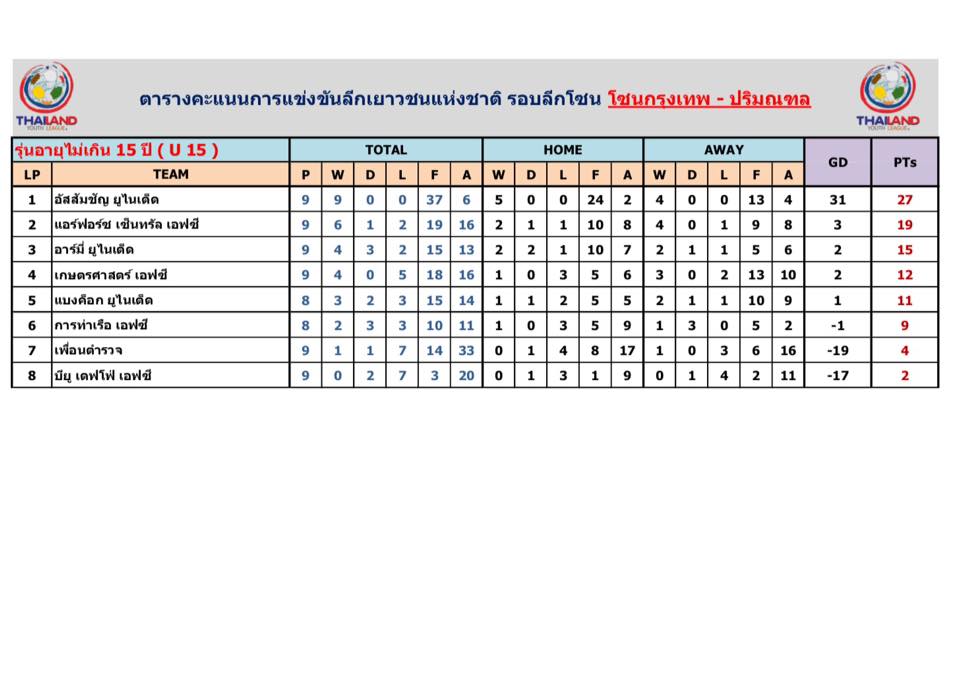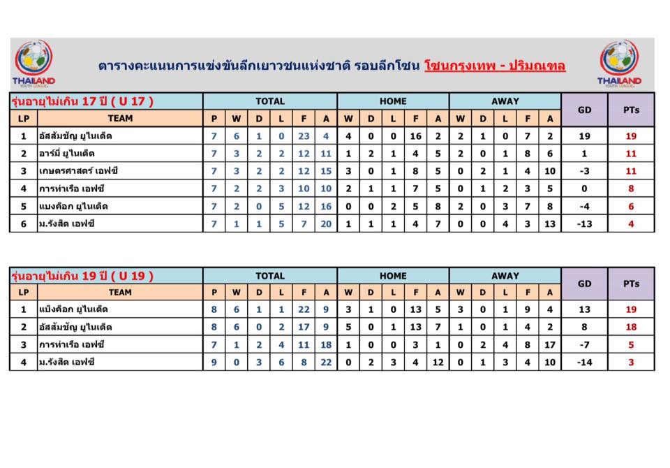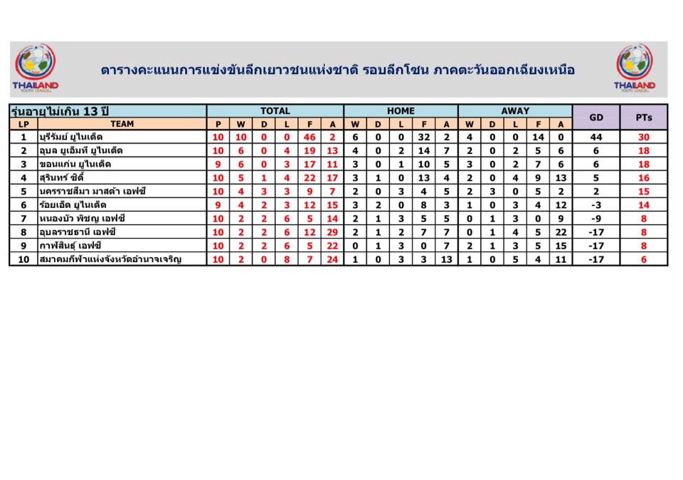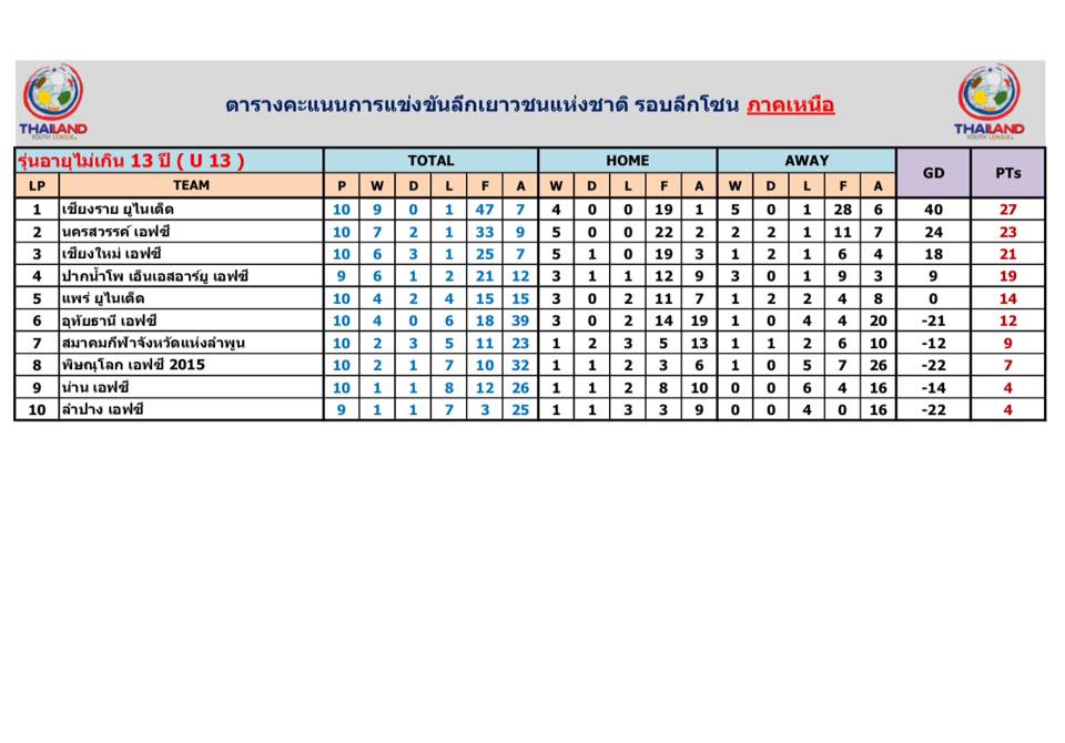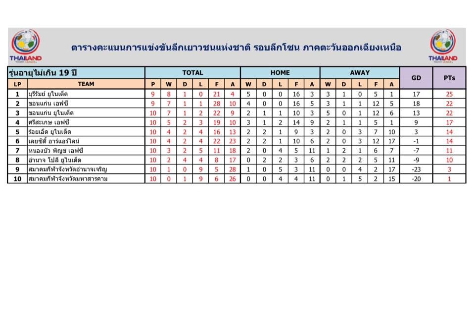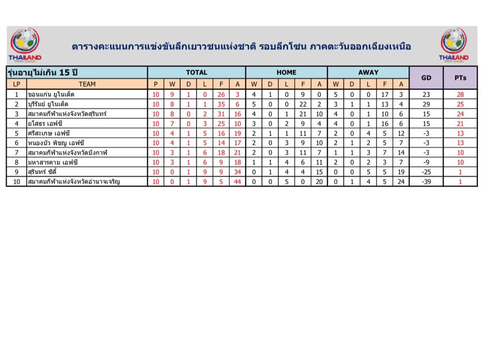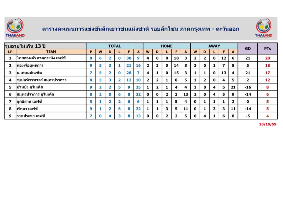 อัพเดตข่าวเกี่ยวกับฟุตบอลลีกเยาวชนแห่งชาติ 15 ตุลาคม 2559