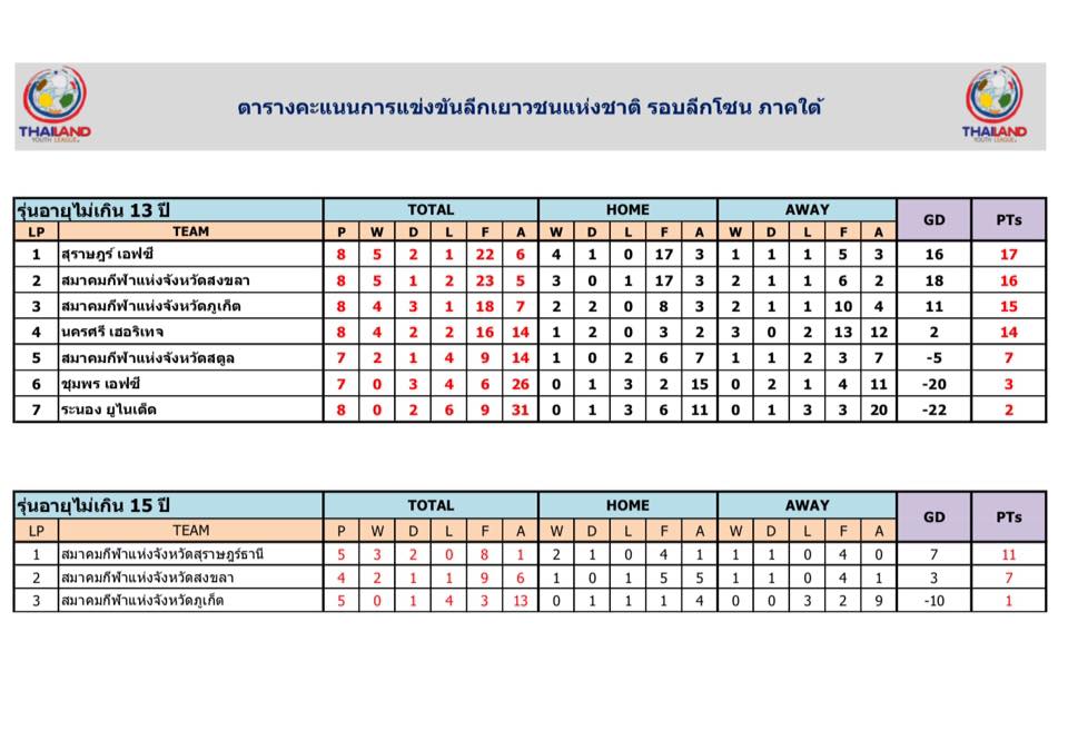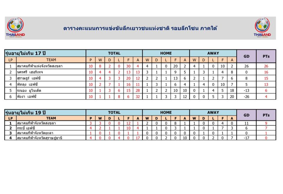 โซนภาคใต้และโซนภาคตะวันออกเฉียงเหนือ U-13,U-15,U-17 และ U-19