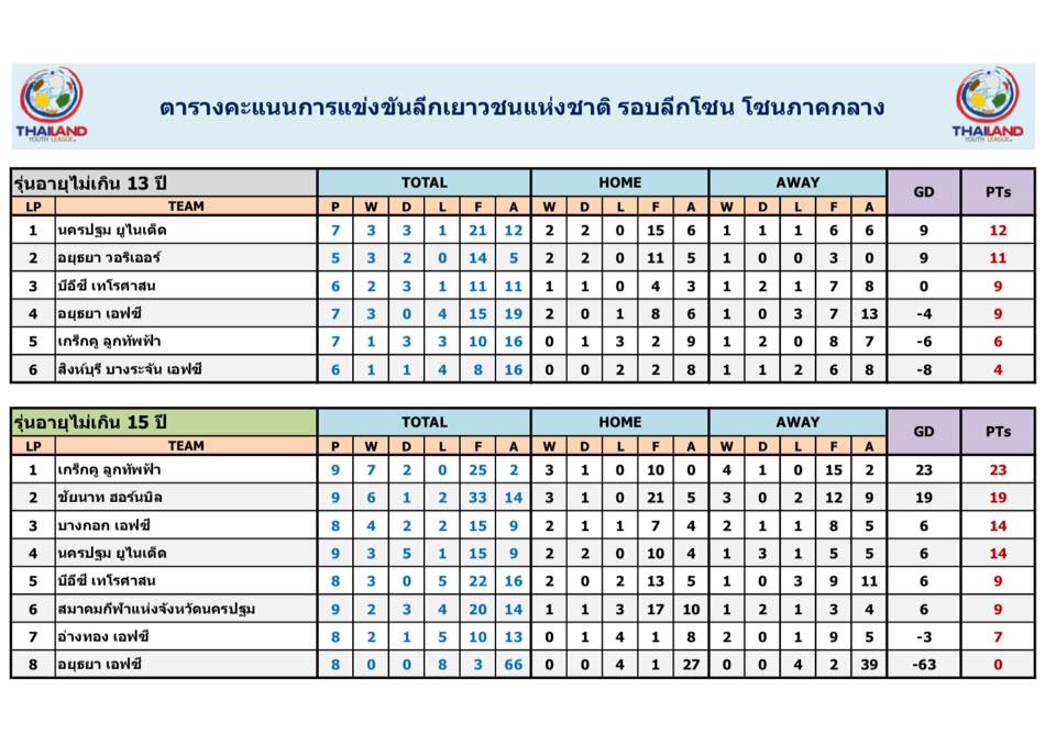 โซนภาคกลางและโซนกรุงเทพ-ปริมณฑล U-13,U-15,U-17 และ U-19