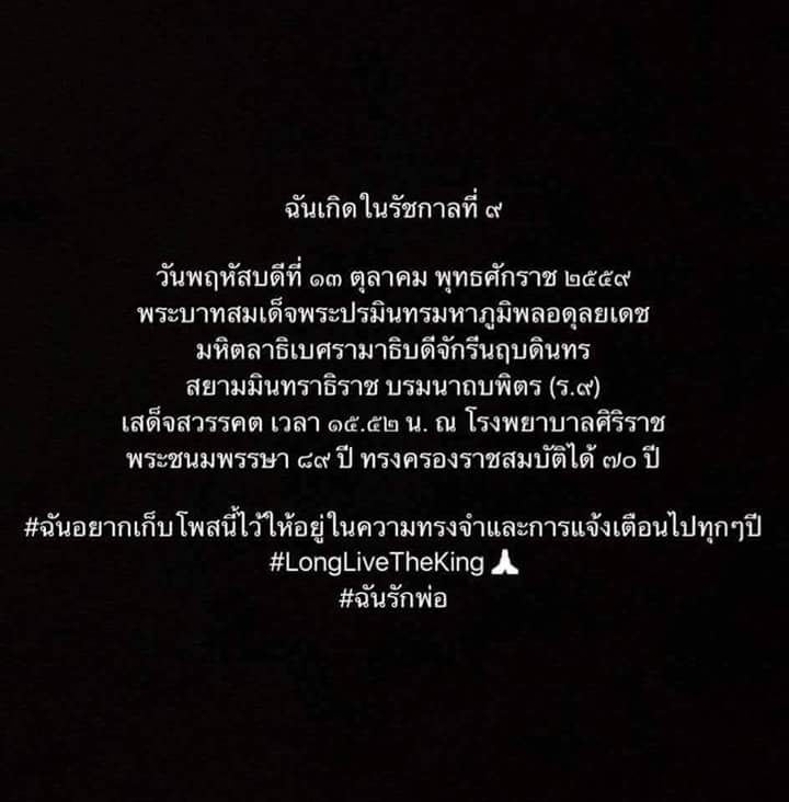 ผมเชื่อว่า ทุกท่าน คงได้รับข่าวร้ายของประเทศขึ้นมาแล้ว มันอาจจะเป็นเรื่องที่ใครหลายคนหวังว่าอยากจะให้เป็นแค่ข่าวลือ เรื่องโกหก แต่เมื่อมีแถลงการจากสำนักพระราชวัง คงต้องยอมรับความจริงว่า พระบาทสมเด็จพ