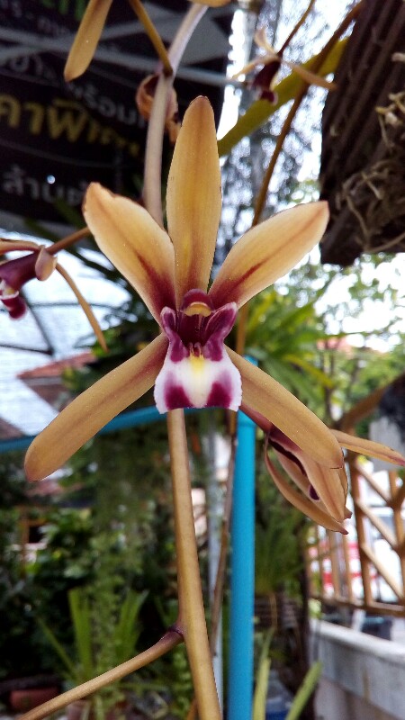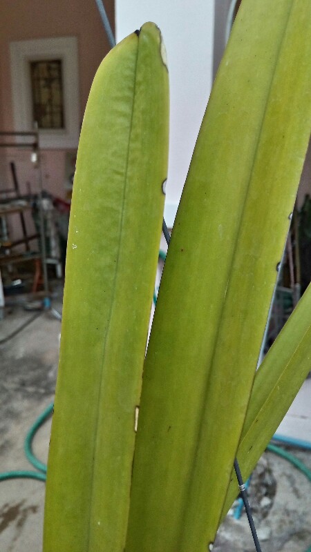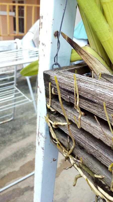ตามภาพเลย สังเกตรากจะชี้ขึ้นบนอากาศ มีใบแบนยาว มีดอก และมีผลคล้ายฝัก