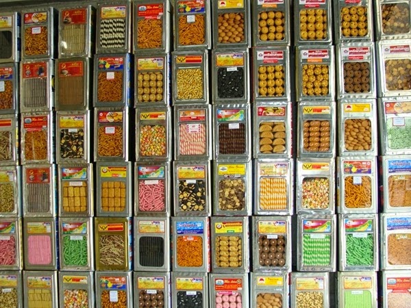 ขนมราคาถูก ก็ต้องขนมปี๊บๆ จำพวกขนมปังหัวจุก แครกเกอร์เอบีซี หาซื้อได้ตามตลาด แล้วนำมาแบ่งใส่ถุงเล็กๆพอรับประทาน แพคให้เรียบร้อย