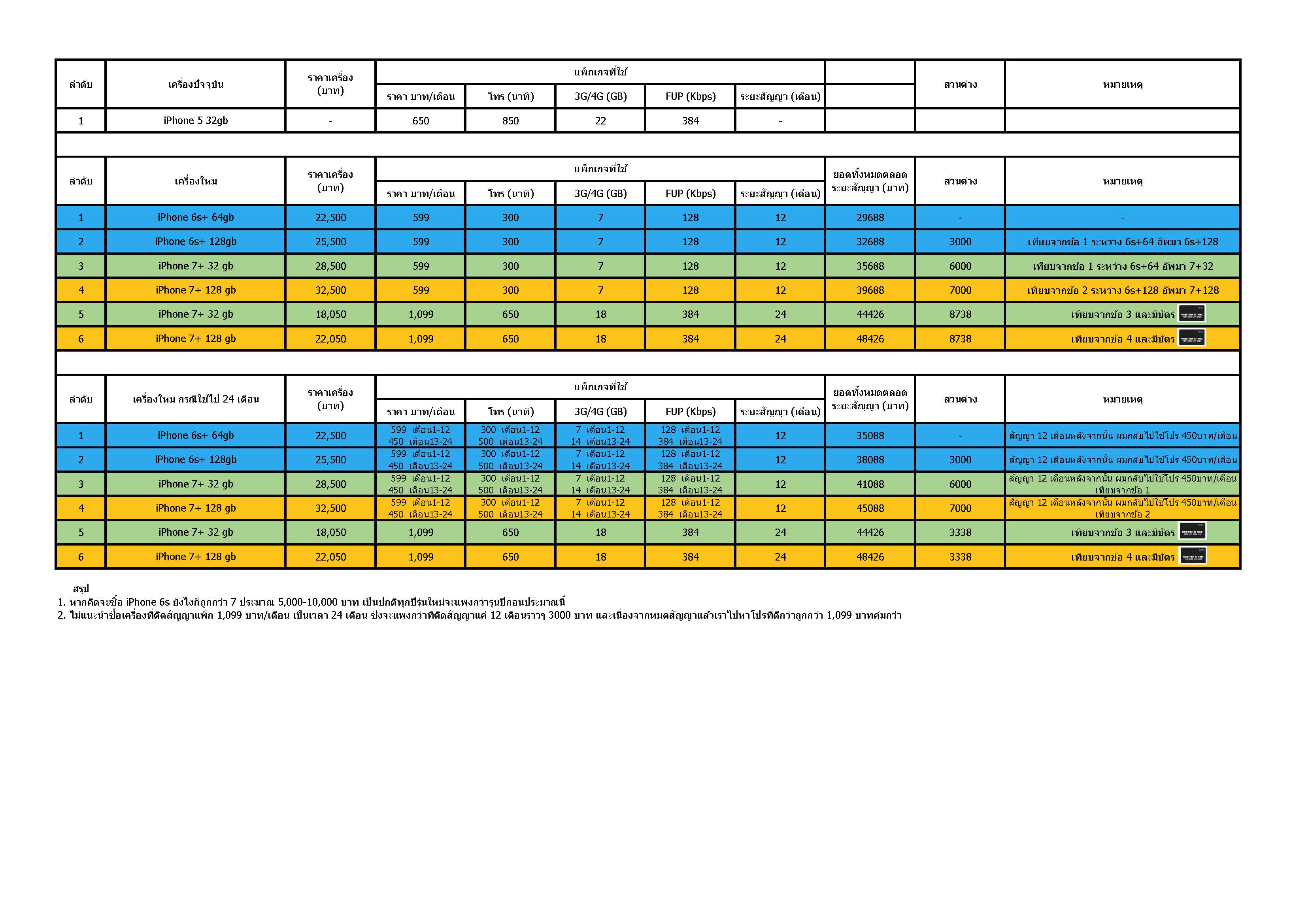ตารางว่าจะซื้อ iPhone 6s หรือ 7 ดีกว่า สมัครโปรแบบไหนดี