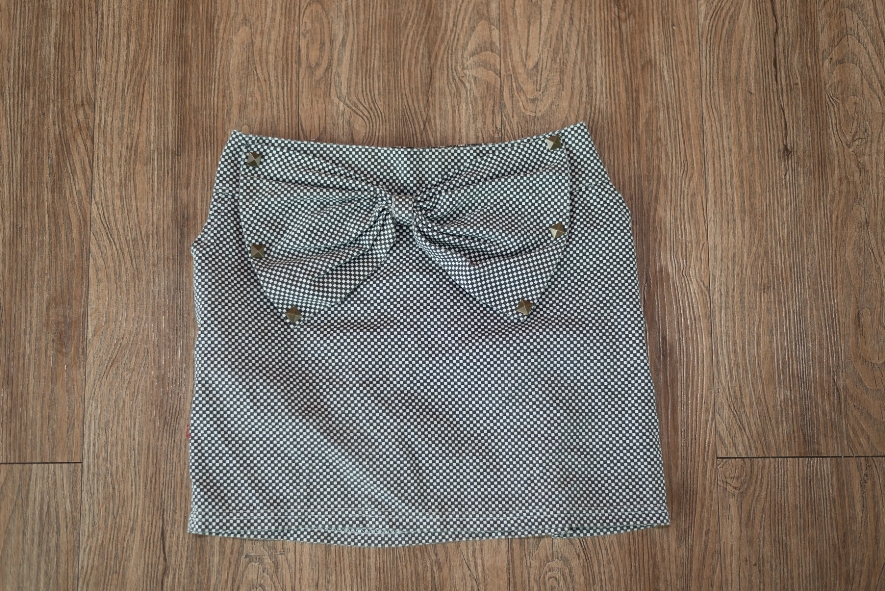 A033 กระโปรงลายหมากรุกขาวดำซีด ” เอว 26-28” สะโพก 35” ยาว 13.5” ราคา 50 บาท
