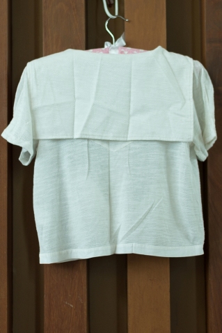 A003 เสื้อคอจีบสีครีม อก 40” ยาว 23” ราคา 50 บาท