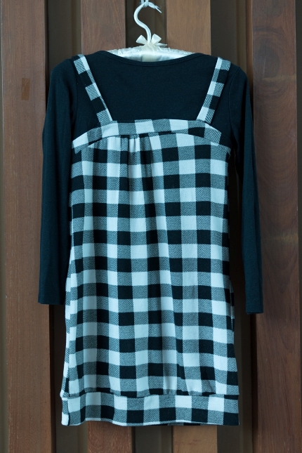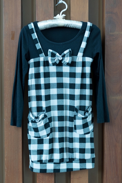 A060 เดรสเอี๊ยมสก๊อตขาวดำ อก 32 สะโพก 35” ยาว 30” ราคา 80 บาท