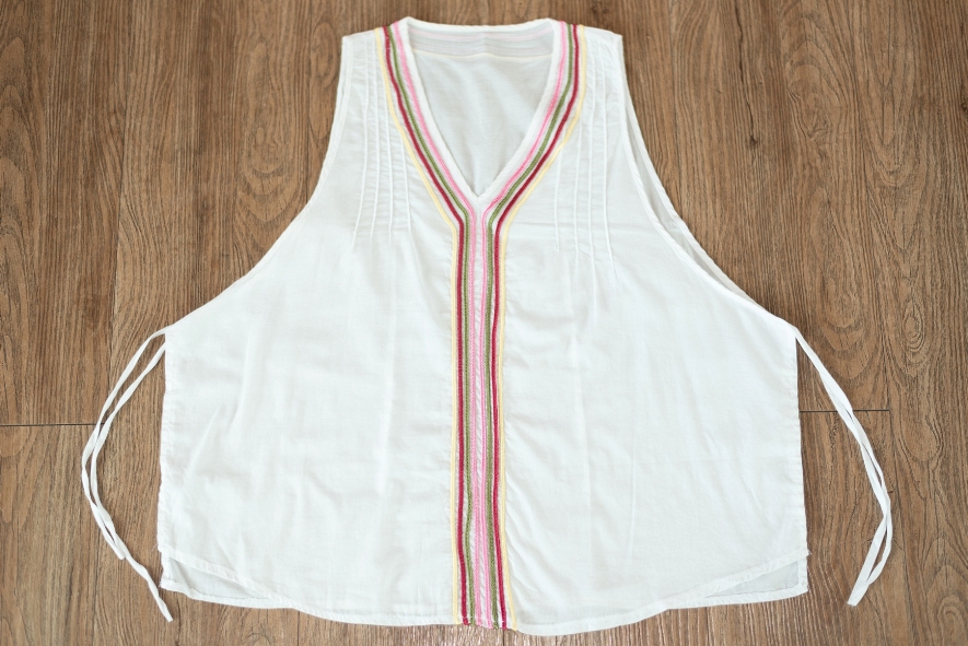 A056 เสื้อเชิ้ตสีขาวเว้าแขน อก 38” ยาว 25” ราคา 50 บาท