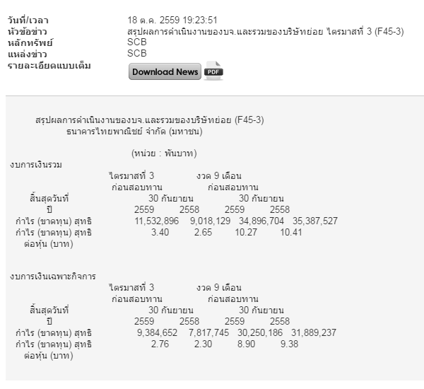 งบ SCB ออกแล้วจ้า ไหนว่าแบงค์จะมากันไง