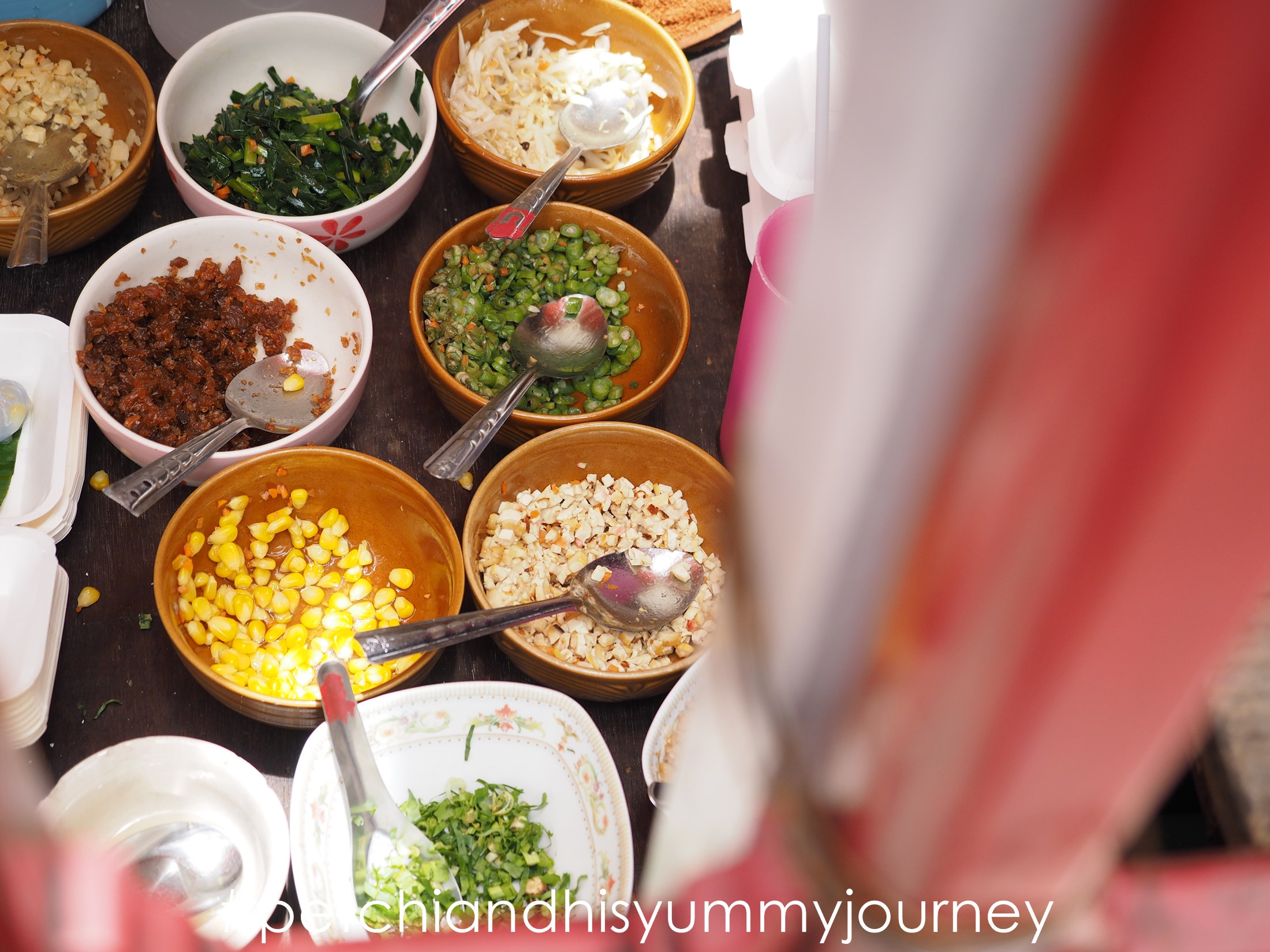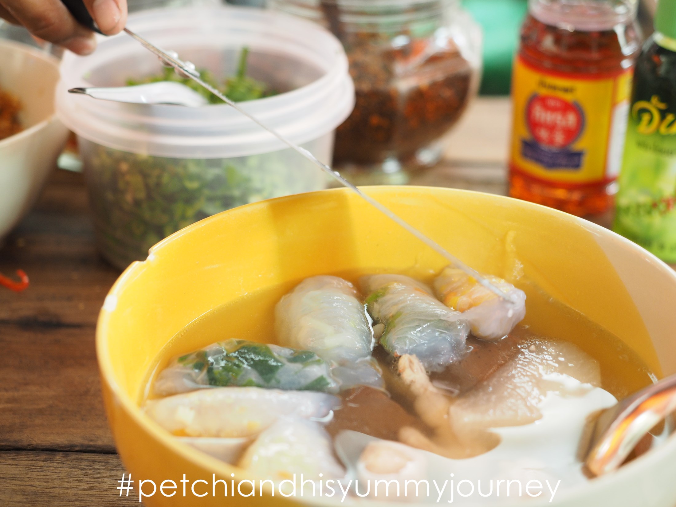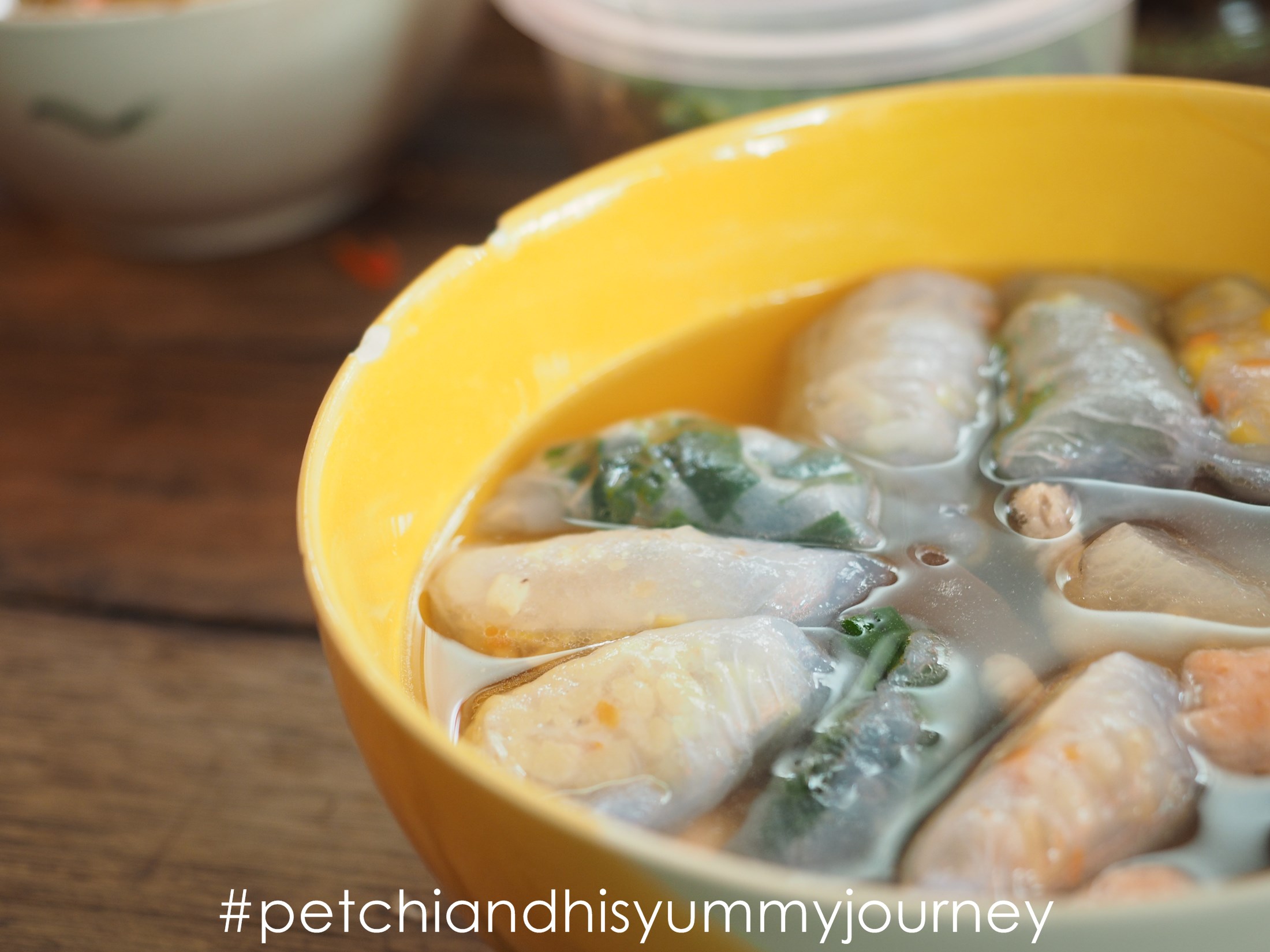 “ครบทุกไส้ไหมครับ” พี่ผู้ชายถามผม ที่ร้านมีไส้ มีทั้งหมด 7 ไส้ด้วยกัน ถั่วฝักยาว ข้าวโพด กุ่ยฉ่าย เต้าหู้ ไชโป้วหวาน ถั่วงอก หน่อไม้ ถ้าใครมาครั้งแรกแนะนำให้ลองครบทุกไส้ไปเลยครับ และถ้าไม่เอาไส้ไหนก็สามารถบอกคนทำก่อนกินได้เลย