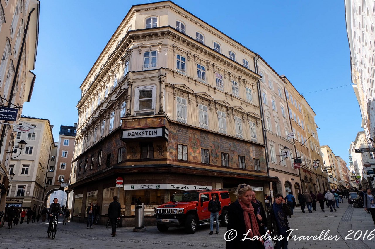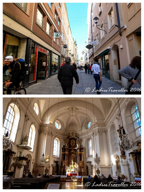 ในวันแรกที่เราไปถึง Salzburg เป็นช่วงประมาณ 4 โมงเย็นแล้ว จึงไปเดินเล่นในเขตเมืองเก่า ซึ่งเป็นเขตที่นักท่องเที่ยวที่มาที่นี่ ต้องมาเดิน ถึงจะเรียกว่ามาถึง Salzburg แต่ในช่วงเย็นเราลองเดินรอบๆนอก ยังไม่ได้เข้าไปในเขตเมืองเก่ามากนัก เพราะกลัวจะมืดซะก่อน
