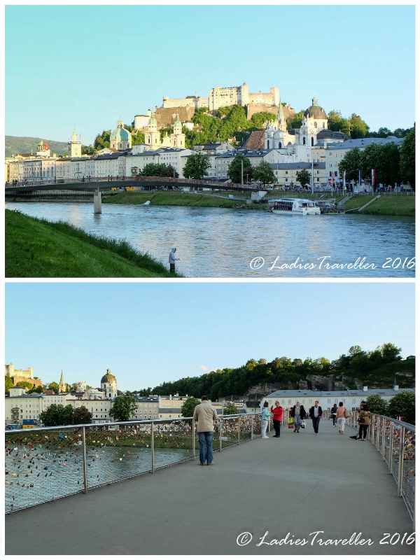สะพานซึ่งเป็นจุดที่เราจะถ่ายภาพวิวที่เป็น Signature view ของ Salzburg การถ่ายภาพต้องเดินไปประมาณกลางสะพาน เพื่อถ่ายให้เห็นเขตเมืองเก่า คู่กับแม่น้ำ Salzach ซึ่งไหลผ่านกลางเมือง พร้อมกับโบสถ์อีกฝั่ง .... ลองจินตนาการถึงภาพแล้ว ช่าง Classic Romantic เสียเหลือเกิน ไม่รู้จะใช้คำไหนอธิบายดี