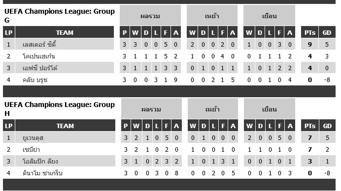 ขณะที่ทีมดังๆอย่าง ยูเวนตุส โบรุสเซีย ดอร์ทมุนด์ เรียลแมดริด มีแค่ 7 คะแนน