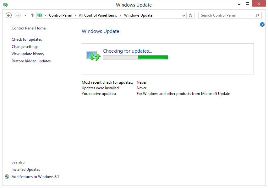 ผมมีปัญหาเกี่ยวกับ windows update เนื่องจากพอลองกดอัพเดตแล้วหน้าจอจะขึ้นแถบโหลดแต่รอแล้วรอเล่า มันก็ยังขึ้นโหลด เคยลองทิ้งไว้แบบนั้นชั่วโมงสองชั่วโมงก็เหมือนเดิมก็ยังขึ้นโหลดอยู่ จากปกติพอคลิก check for update ไม่นานก็จะขึ้น list อัพเดตมาให้ หรือบางครั้งที่มันไม่มีอัพเดตอะไรก็จะแสดงข้อความบอกไม่มีอัพเดตใหม่ แต่ตอนนี้มันขึ้นโหลดอย่างเดียว (ตามภาพ)