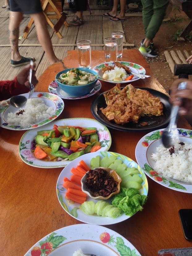 เดินทางประมาณ ชม.เศษ ถึงโลตัสเชียงดาว ลงรถมาอย่างแรกที่ทำคือ มองหาร้านข้าวขาหมูจร้า เดินรี่เข้าไปเลย สั่งกันกระหน่ำ แกงฮังเล แกงเนื้อ ตือฮวน ขาหมู1 ขา ( ปลอบใจตัวเองกินไปเถอะเด๋วกลับมาค่อยลด )