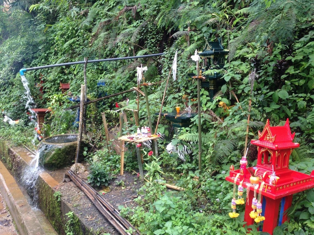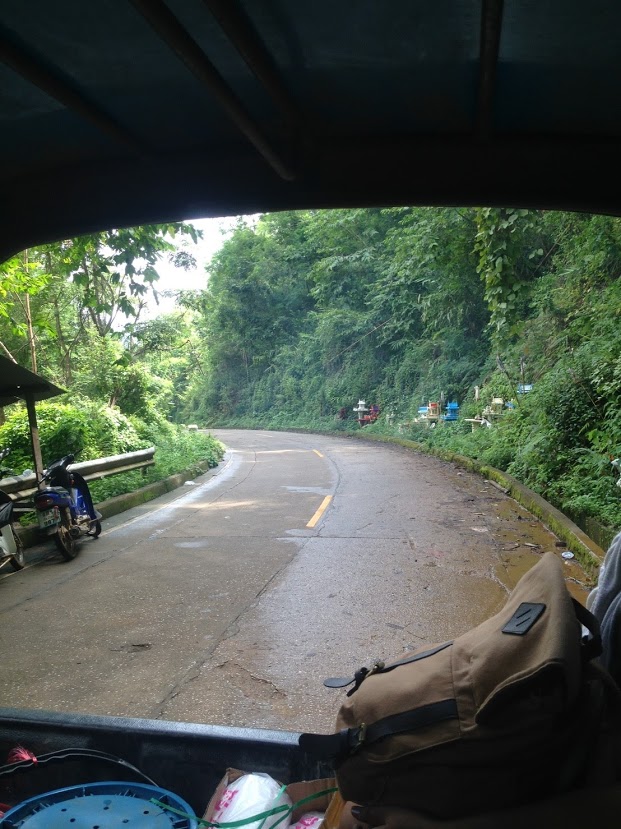 มาเรื่อยๆจะเจอศาลเจ้าที่ ป้าคนขับรถขอลงมาไหว้เจ้าที่ เจ้าป่า เจ้าเขา กันสักหน่อย ถือว่าเป็นเป็นสิริมงคล ขับต่อขึ้นไปถึงระเบียงดาว พอลงรถก็จะเห็นเป็นบันไดลดหลั่นตามลงไปตามไหล่เขา