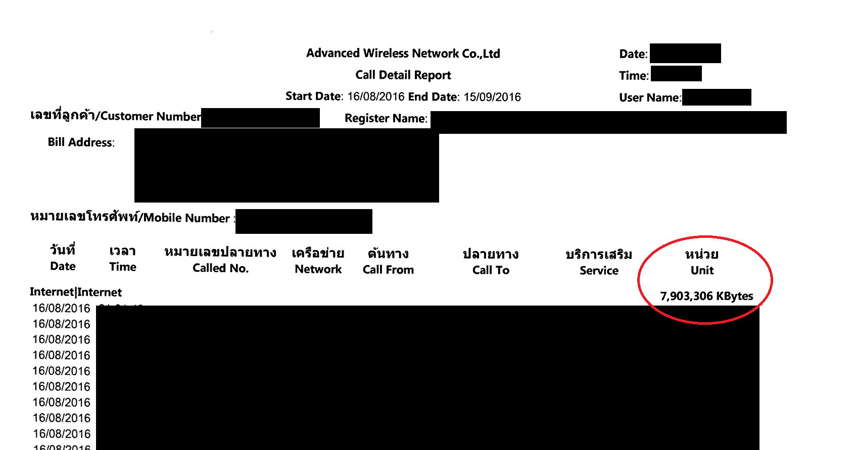 วันพุธที่ 19/10/59 เราแวะไปเอามาตอนเที่ยง แล้วก็กลับเนื่องจากเพราะติดทำงานต่อทั้งวัน ได้เอกสารมาชัดเจนเลยว่าในเดือนนั้นเราใช้งาน Internet ทั้งหมดไป 7,903,306 Kbytes เหมือนดังที่พนักงาน ที่ Shop ที่แรกบอกเรา