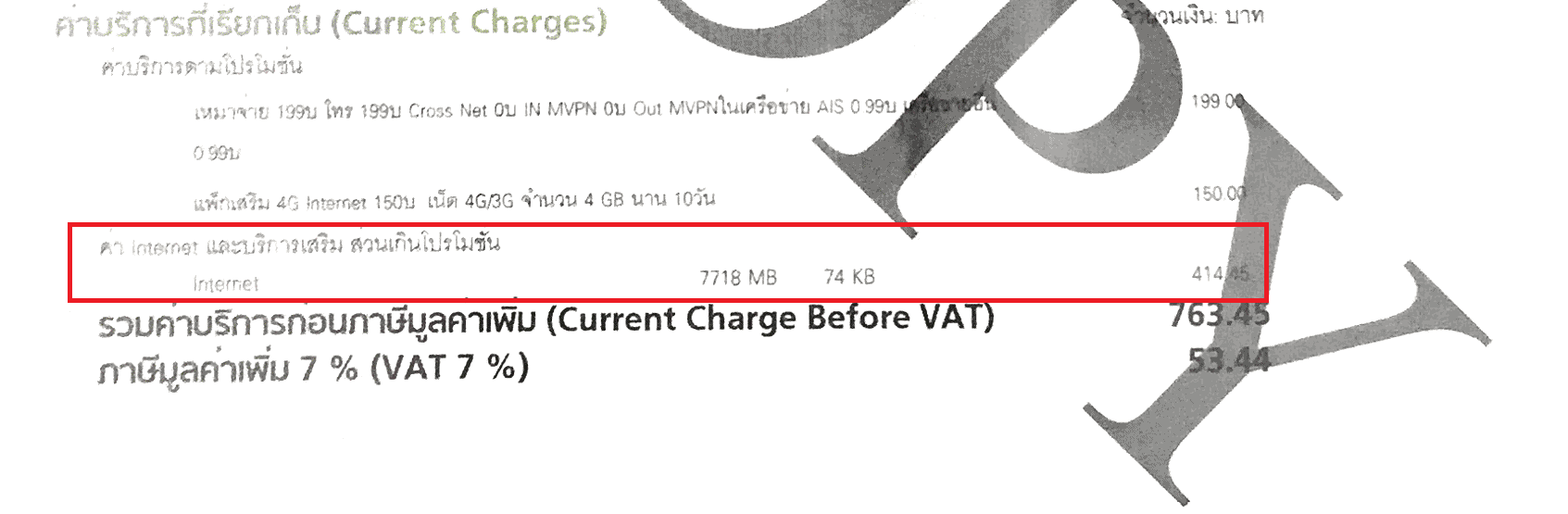 3. ยอดเงินจากการใช้ Internet ส่วนเกินที่ใบแจ้งมา ไม่เยอะหรอกค่ะ 400 กว่าบาท เราแค่อยากรู้ความจริง