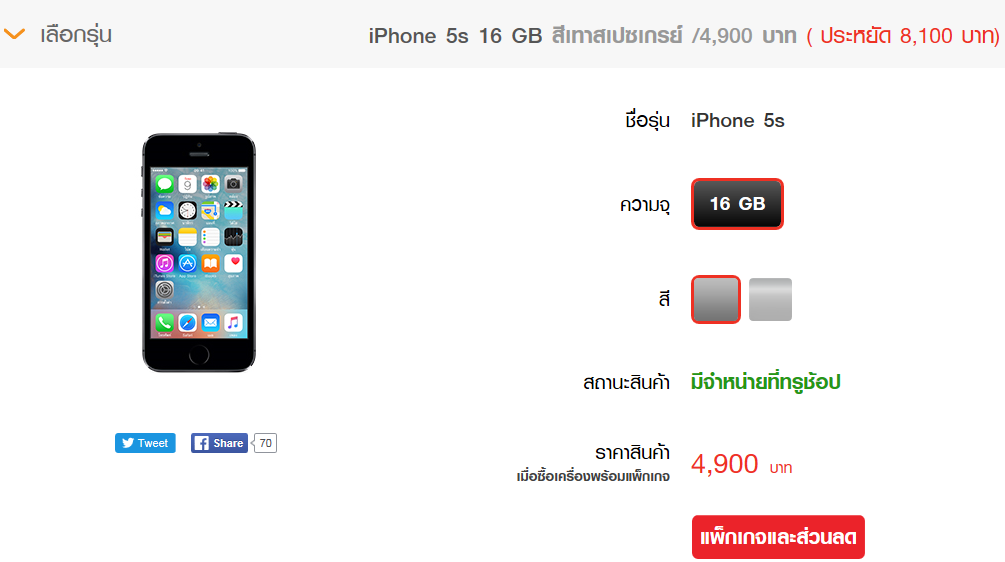 จากที่ตามหาซื้อเครื่อง ไอโฟน 5s ของ AIS มาหลายร้าน ของก็หมดทุกร้าน เพราะอยากจะซื้อในราคาที่ถูกพร้อมกับแพ็คเกจที่ใช้รายเดือนอยู่แล้ว พอดีเห็นทางทรูมูฟเขาจัดโปรโมชั้นลดราคาเครื่องพร้อมกับชำระแพ็คเกจล่วง