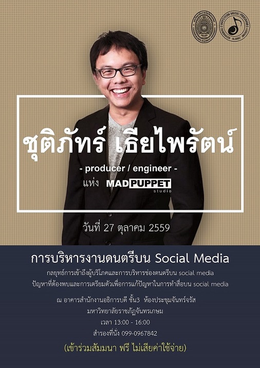 ขอเชิญชวนเข้าร่วมสัมนา"การบริหารงานดนตรีบน Social Media" โดยโปรดิวเซอร์จาก Madpuppet Studio ที่มียอดวิวกว่า70ล้านครั้ง