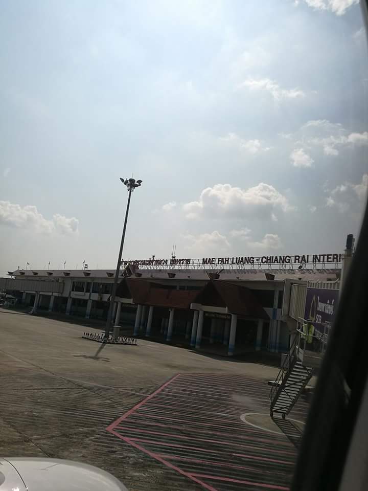 ตอนนี้มาถึงสนามบินแม่ฟ้าหลวงโดยปลอดภัย ระหว่างรอรับกระเป๋า ก็มีวงดนตรีไทยบรรเลงเพลงให้ฟังเบาๆ บอกกับเราเป็นนัยๆว่า "ยินดีต้อนรับ" หลังจากรับกระเป๋าเสร็จ เดินออกมา งง เลยค่ะ ไปทางไหนต่อดีเรา อยู่ๆก็เจอกับทีมงานรถ TAXI ป้ายเขียวของสนามบิน มาล้อมหน้าล้อมหลังเราไว้ แอบตกใจนิดหน่อย แต่ทำไงได้ล่ะคะ ก่อนเที่ยวไม่ได้ทำการบ้านมาซะด้วย ก็โดนลากไปที่เคาน์เตอร์ TAXI ตามระเบียบ เราก็แจ้งชื่อที่พักไปกับเคาน์เตอร์ แต่ไม่มีใครรู้จักเลย เฮ้ย! จริงดิ ไม่เคยได้ยินชื่อ เราเลยให้เบอร์โทรที่พัก ให้เจ้าของถิ่นเค้าคุยกันเอาเอง สรุปคือ รถ TAXI ต้องไปส่งเราที่แม่ลาว ค่ารถ TAXI ป้ายเขียวของสนามบินทำให้เราย้อนกลับไป 14 อีกครั้ง ปะหนึ่งเจอรักแรกพบ หัวใจเต้นผิดจังหวะ ตกใจพร้อมอึ้งอยู่นานสองนาน สงสัยเคาน์เตอร์เห็นเรายืนนิ่ง สตั๊นไปมากกว่า 10 วิ เลยพูดเสียงดังขึ้น พร้อมแจ้งยอดเงินที่เราต้องชำระอีกครั้ง “ 500 บาท ค่ะ” โอ้แม่จ้าวววววววววววววววววว ทำไมมันแพงงงงอย่างเน้ ใครก็ได้ช่วยตบหน้าฉันที แบงค์ 500 บาท ปลิวออกจากกระเป๋าอย่างรวดเร็ว……