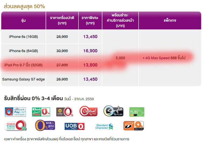 สืบเนื่องจาก ได้เห็นโฆษณา AIS Serenade 12 ปี ลดราคา iPad Pro 9.7 32Gb 50% โดยใช้สิทธิครอบครัว Serenade