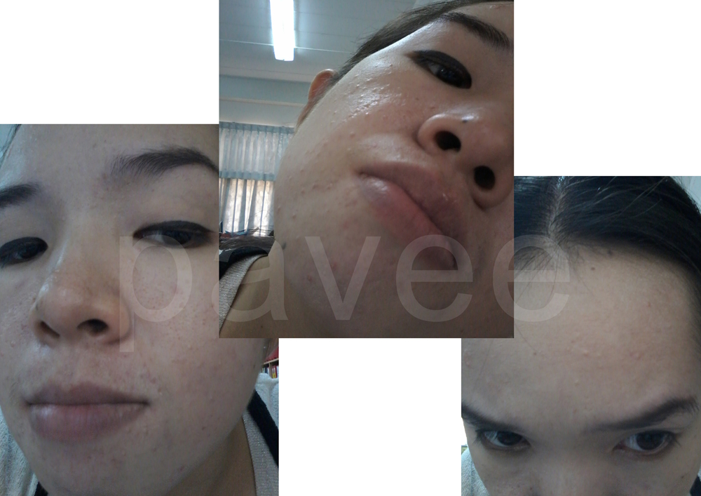 ช่วงนั้น ตัดสินใจหยุดใช้ทุกอย่างและตัดสินใจไปหาหมอ ที่คลินิก ซึ่งได้ที่ล้างหน้า ครีมบำรุงยา แต้มสิว ยารับประทานเช้า เย็น ซึ่งลองประมาณ หนึ่งเดือน แต่สิวเห่อกว่าในรูปเยอะนะคะ และในที่สุด ก็ทนไม่ไหวค่ะ เพราะมันอักเสบหนักมาก ตัดสินใจ หยุดใช้ และกลับมารักษาด้วยตัวเอง