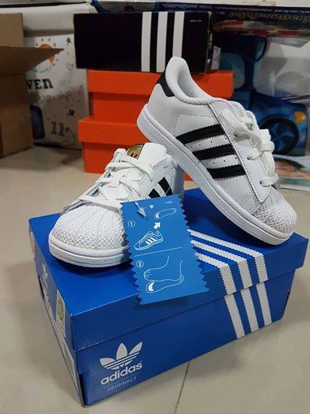 2600 ใหม่ป้ายห้อย รวมส่ง EMS ค่ะ Adidas kids superstar แท้ ฝากไว้ในอ้อมใจค่ะ ขนาดเท้าประมาณ 16.6 เซน