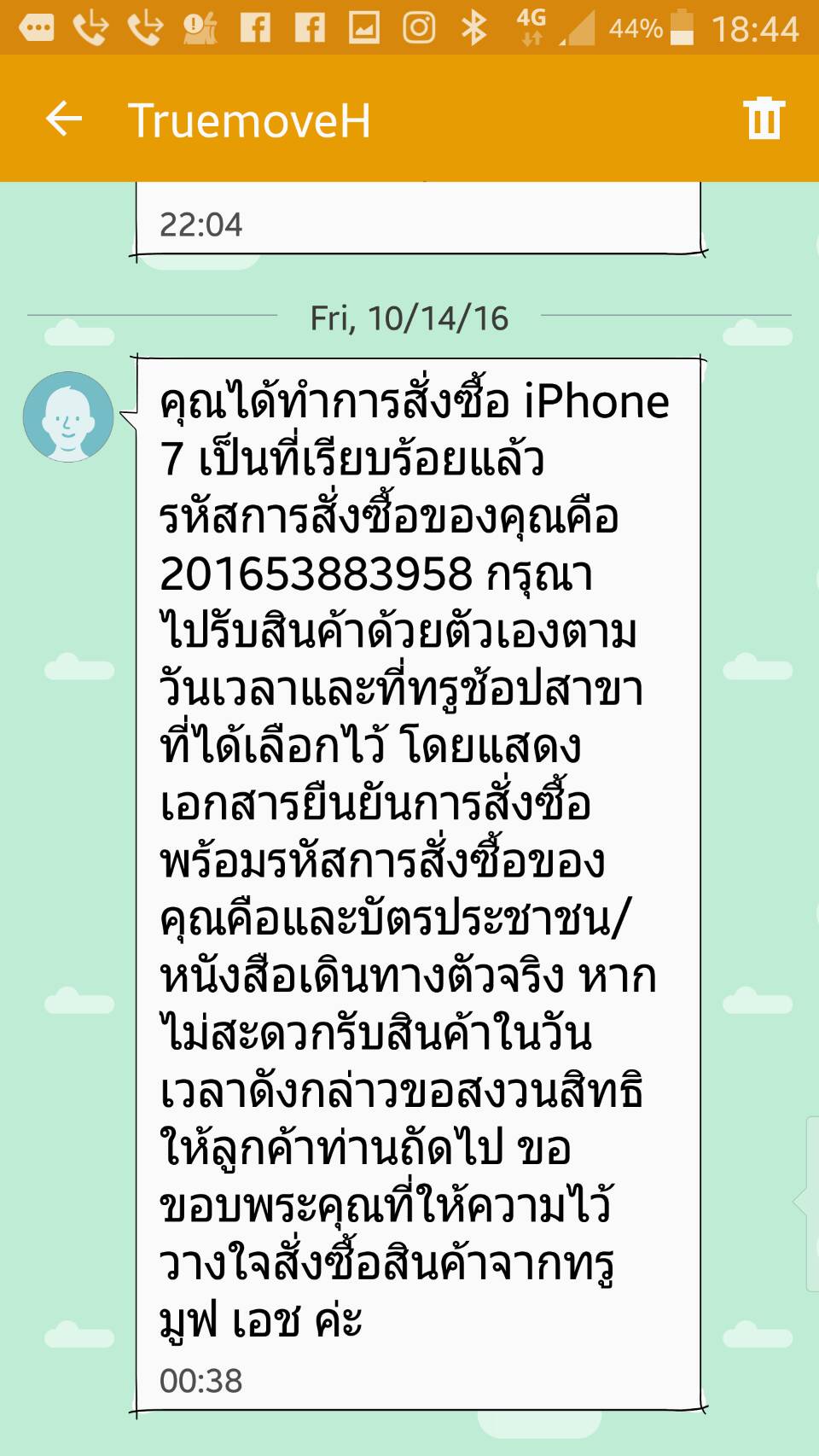 สืบเนื่องจากเหตุการณ์เมื่อวานค่ะ เราจอง iPhone7+ ไว้กับทรู เมื่อวันที่ 14 ต.ค ที่ผ่านมา