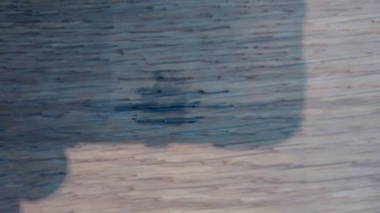 สักสองชั่วโมงผ่านไปเราสังเกตเห็นรอยนี้เกิดขึ้น อาจหยดจากผ้าที่ทำการใช้งาน เลยถามว่าทำอย่างไรจึงจะเอารอยเปื้อนนี้ออกได้