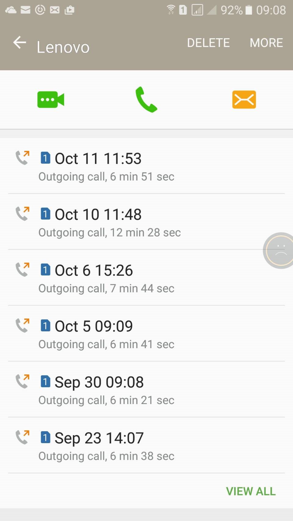 ภาพที่ 4 Log การโทรเข้าศูนย์ฯ (02 7873067) เพื่อสอบถามความคืบหน้าตั้งแต่วันแรก (24 กันยายน 2559)
