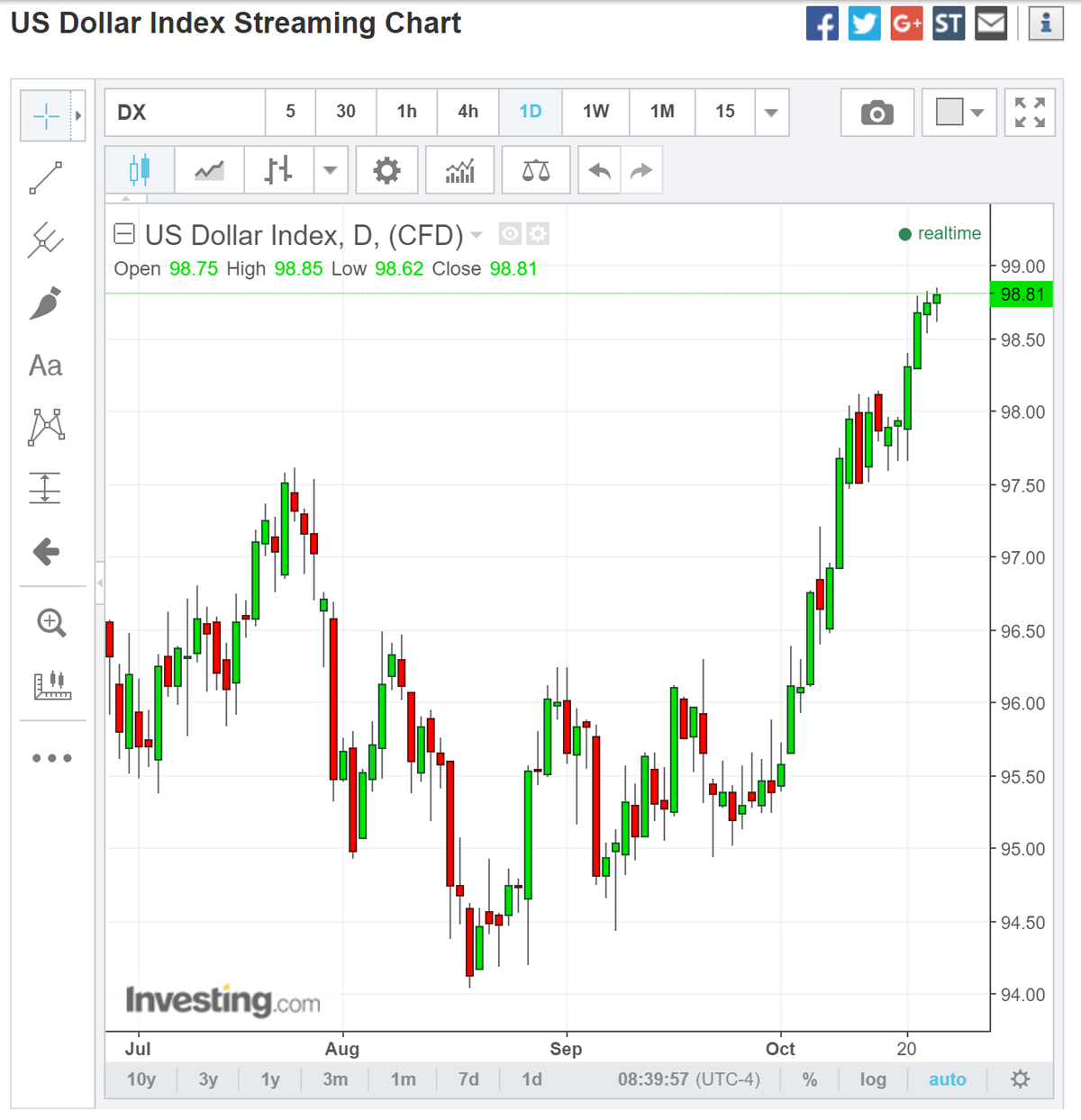 US Dollar Index เพิ่มขึ้นเรื่อยๆ มีผลทำให้ค่าเงินบาทอ่อนลงใช่ไหมครับ