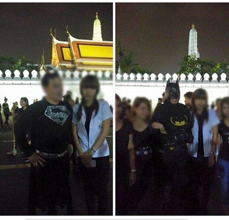 วันที่ 25 ตุลาคม 2559 โลกออนไลน์มีการเผยแพร่ภาพชายกลุ่มหนึ่งที่มีการแต่งกายด้วยชุดฮีโร่ เช่น ซูเปอร์แมน แบทแมน ร่วมถ่ายรูปกับประชาชนที่เดินทางมาสักการะพระบรมศพ ณ พระบรมมหาราชวัง