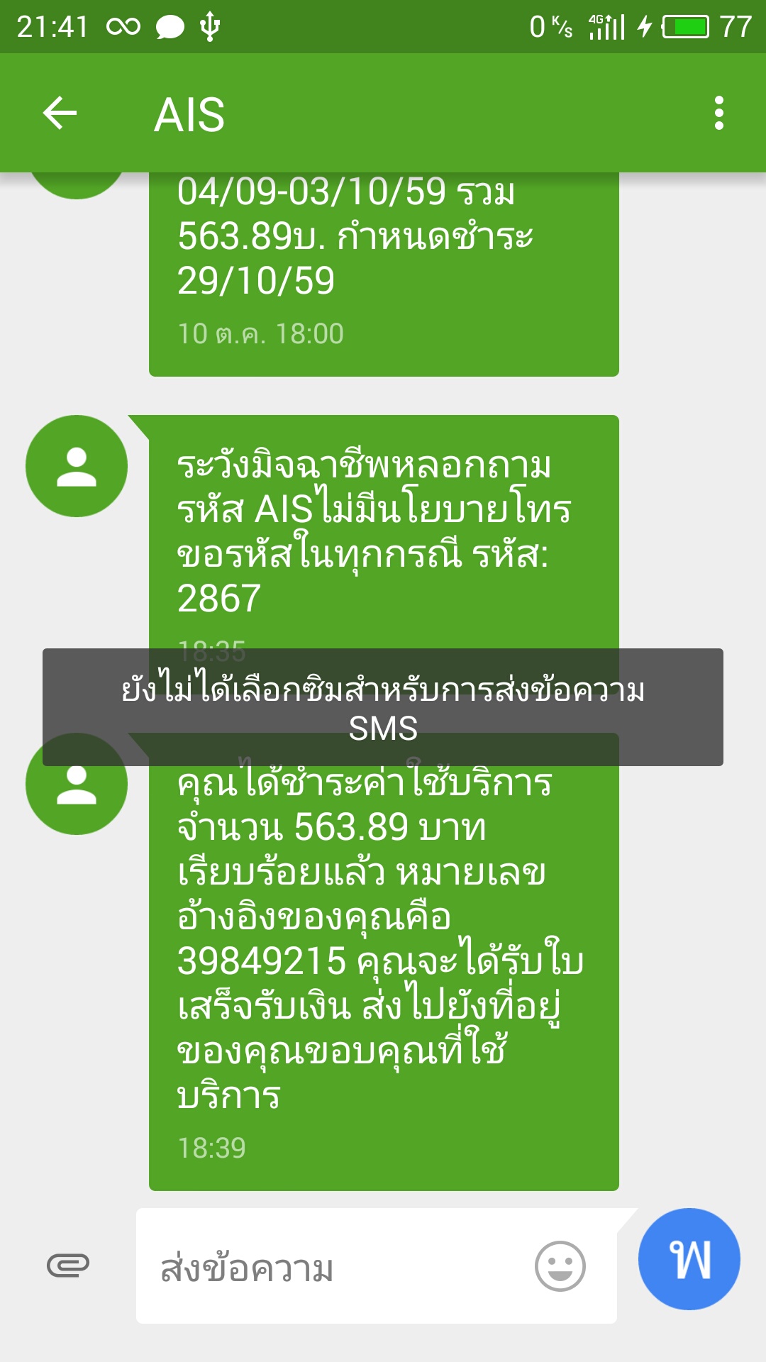 ...เข้าเรื่อง เช่น AIS ส่งข้อความมาให้ ข้อความมันก็เรียงลงมาเรื่อยๆ ทีนี้ผมอยากลบบางข้อความ บางข้อความอยากเก็บไว้ โดยผมกดข้อความนั้นให้ขึ้นสีทึบแล้วกดรูปถังขยะ ระบบเเจ้งว่าผมยังไม่ได้เลือกซิมสำหรับส่งข้อความ ผมหาเมนูเลือกซิมไม่เจอครับ เครื่อง MEIZU 2 ซิมใช้แค่ซิมเดียว AIS ครับ ช่วยแนะนำหน่อยครับ