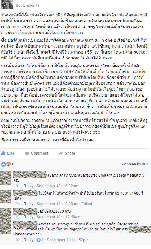 ถามว่าแล้วผมจะมาตั้งกระทู้ประจารตัวเองทำไม เพราะผมก็เพิ่งฉุกคิดได้จากเหตุการณ์ที่เพื่อนโดนเบอร์แปลกๆอ้างว่ามาจากค่าย xxx โทรมาขอข้อมูลยืนยัน ด้วยความที่นาง งง กับคำศัพท์ต่างๆนางก็เผลอให้ไป เอะใจอีกทีก็กลัวว่าตัวเองจะโดนหลอก วิตกกังวล โชคดีที่มีคนแชร์กลุ่มที่เป็นผู้ใช้เครือข่าย xxx ที่นางอยู่ นางเลยไปโพสถามก็ได้คำตอบว่าเบอร์ที่โทรมาเป็นเบอร์ xxx