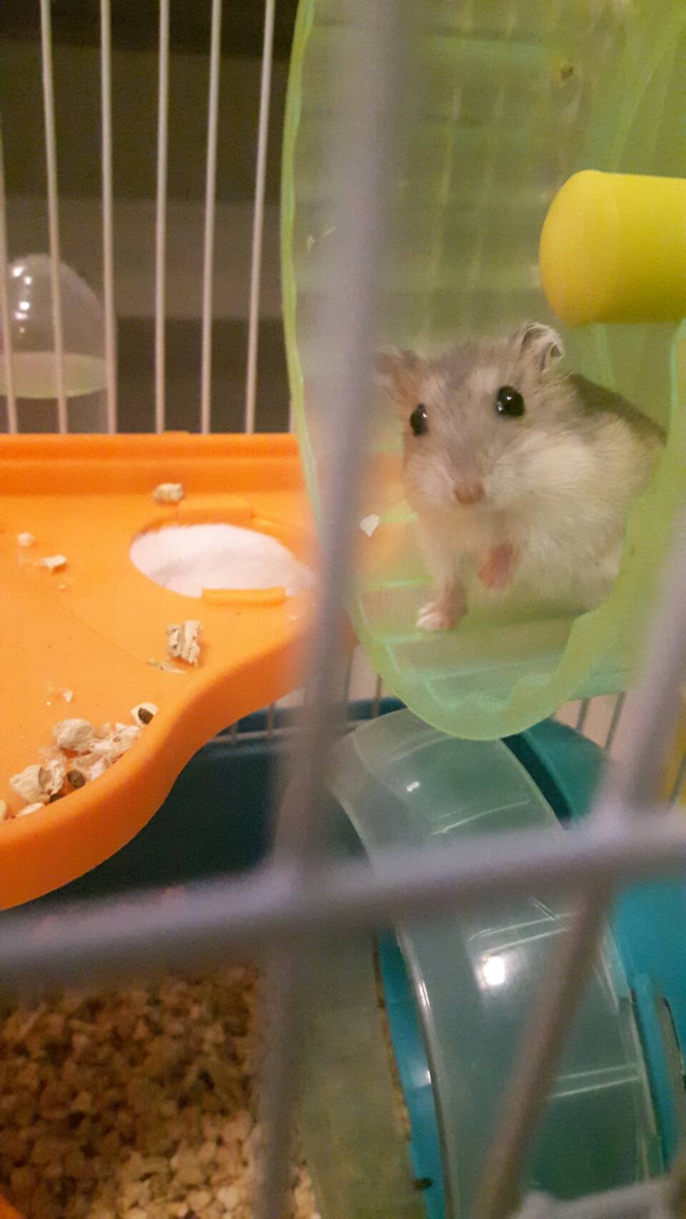 ตอนนี้เราเลี้ยงแฮมสเตอร์พันธุ์ ไจแอนท์ 2 ตัวค่ะ อายุประมาณ 11 เดือนทั้งคู่เลย รับมาจากห้าง มีตัวผู้กับตัวเมีย เค้าแยกกรงกันอยู่ ตัวเมียจะแข็งแรง อ้วน แต่ตัวผู้ไม่ค่อยสบาย ช่วงนี้เราเรียนหนักมาก แทบไม่