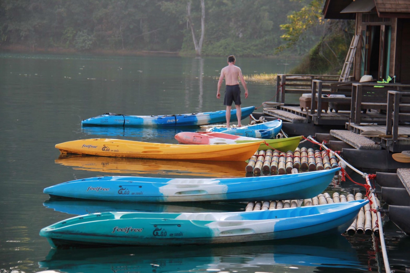 พายเรือคยัค พายออกจากหน้ารีสอร์ทได้ไม่ไกลมากถึงกับหอบกันเลยทีเดียว อีกอย่างเราแอบกลัวน้ำอีกแล้ว