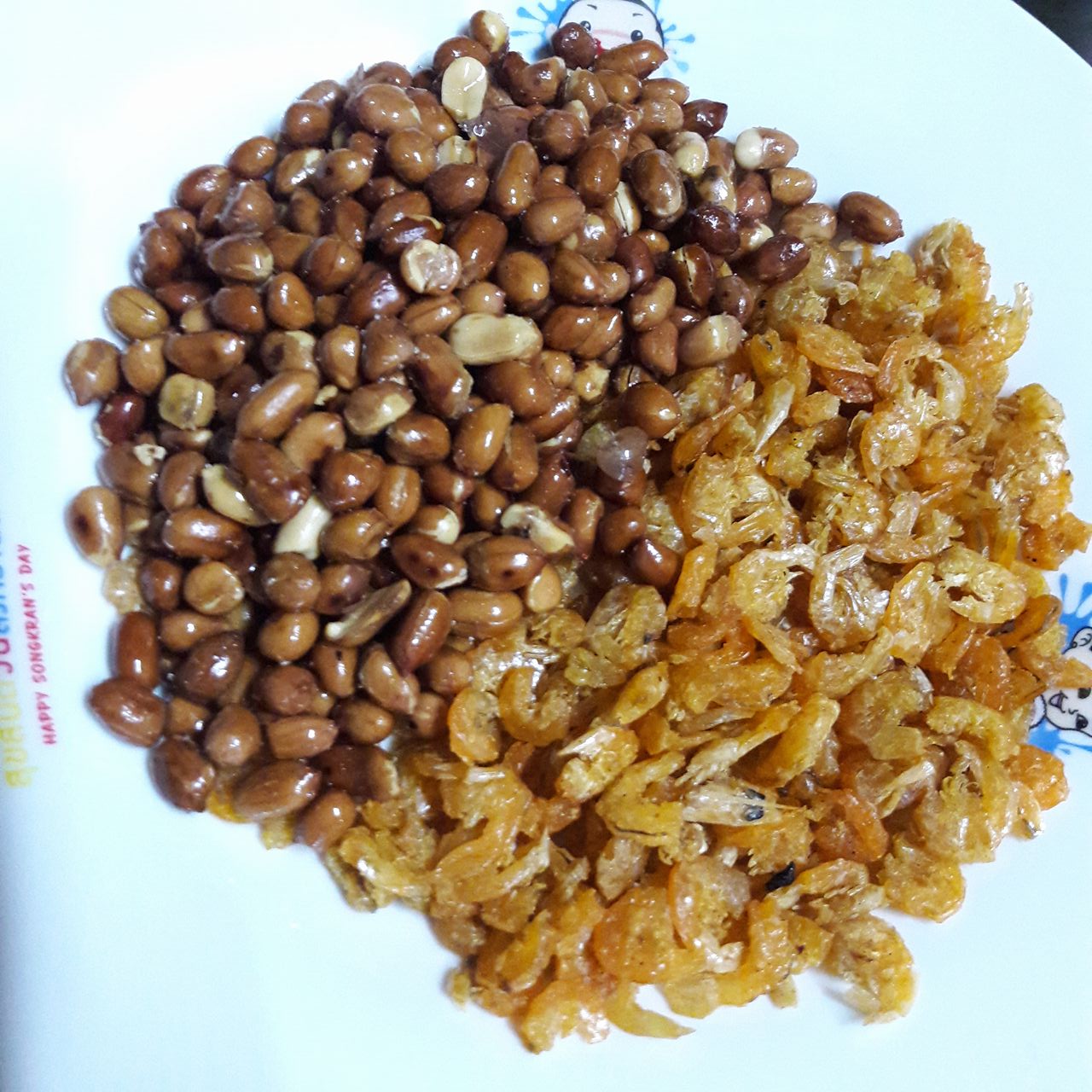 มาเริ่มทำกันนะ นำ กุ้งแห้งเนื้อ ไปทอดน้ำมันให้หอม เหลือง กรอบ และ นำ ถั่วลิสง ไปคั่วให้หอม เสร็จ พักไว้ จริงๆจะใช้ถั่วอะไรก็ได้นะแล้วแต่ทุกคนชอบเลย แต่ดิฉันตอนนั้นหาได้แค่ถั่วลิสง เลยใช้ถั่วนี้แหละ