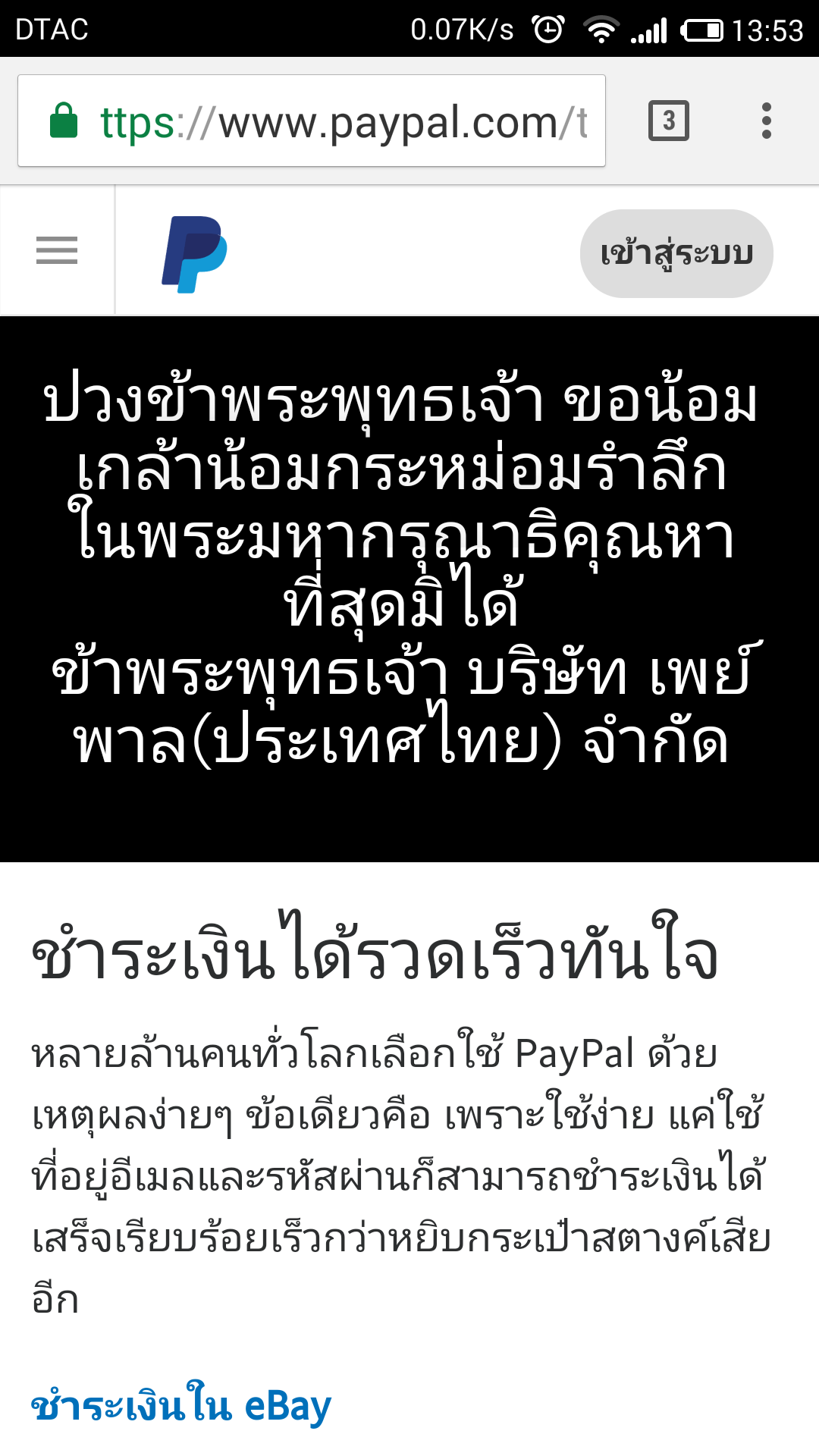 ขอความช่วยเหลือเกี่ยวกับเว็บPayPalหน่อยครับ