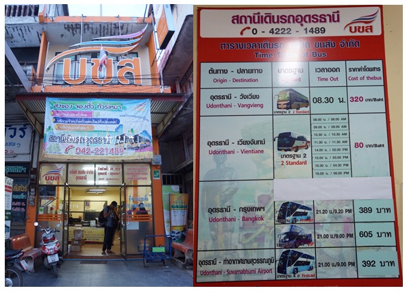 บขส.อุดรฯ: การซื้อตั๋วไปวังเวียงต้องใช้ Passport ค่ะ รถจะมีรอบเดียวคือ 08.30 น. หลังจากซื้อตั๋วเสร็จ ค่อยไปทำธุระส่วนตัว และหาข้าวทานค่ะ