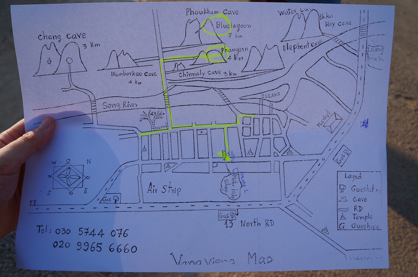 อิ่มพร้อมลุย Blue Lagoon ค๊าาาา ดูจากแผนที่ที่ร้านให้มาได้เลยค่ะ ไปไม่ยากค่ะ แต่จะมีช่วงนึงถนนไม่ค่อยดีค่ะ ค่าข้ามสะพาน (คนละ 10,000 กีบ)