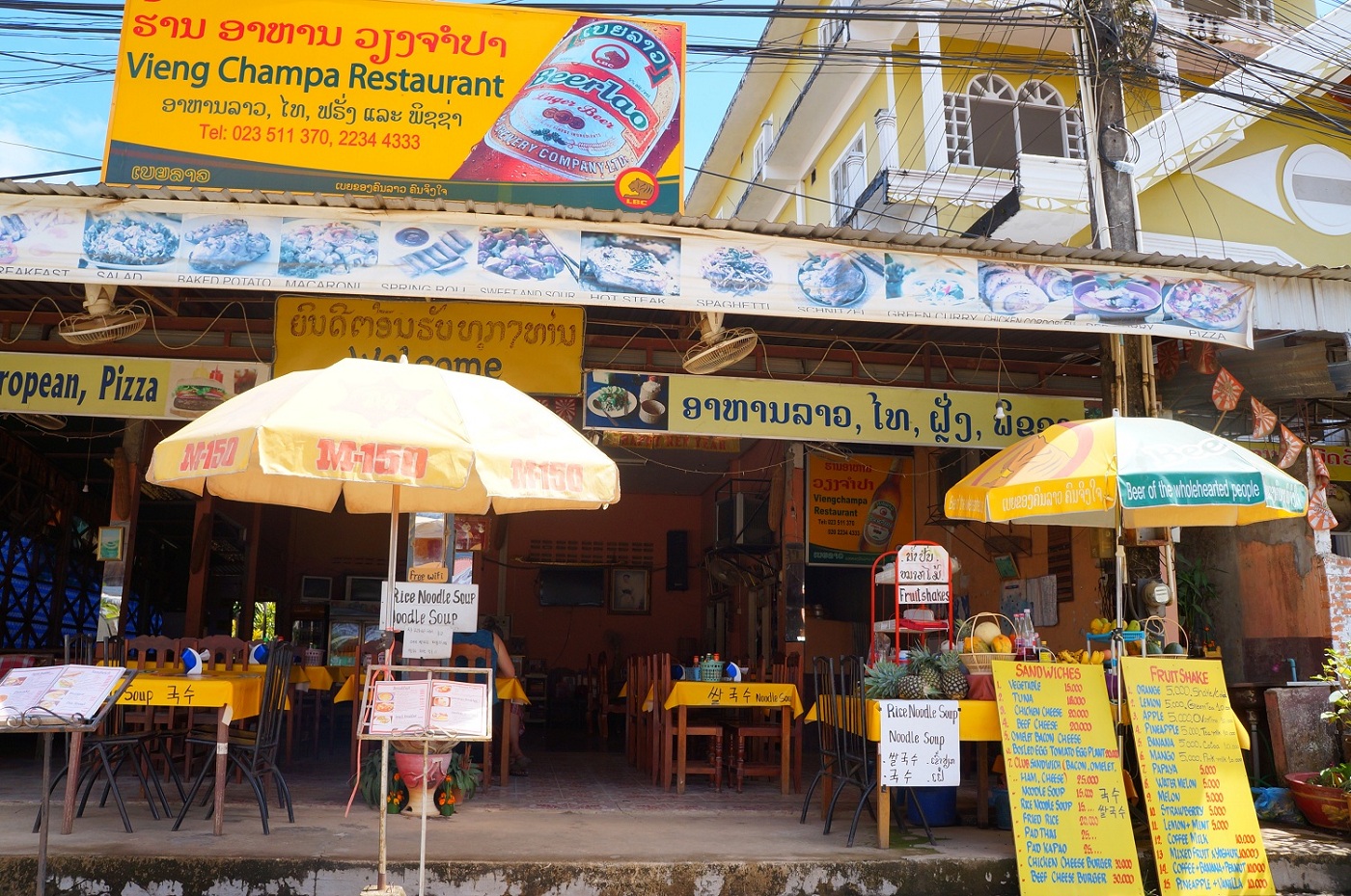 ออกเดินหาที่พัก ที่พักที่มองหาคือ จำปาลาว ค่ะ ออกจากที่พัก เดินตรงไปสุดทาง เลี้ยวขวา เดินไปเรื่อย ๆ ก็เจอค่ะ จะเจอ Nam Song Garden ก่อน ที่นี้ก็สวยนะคะ ราคาประมาณ 300 บาท แต่ห้องไม่ว่างค่ะ ถัดมาเป็นจำปาลาว เย้ ๆ ๆ พี่ Receptionist เป็นคนไทย (เจ้าของ) ราคาประมาณ 800 กว่าบาท แต่วันที่จะจองมีแต่บังกะโล ไม่มีห้อง เลยไม่พัก เพราะรู้สึกว่าบังกะโล ใหญ่ไปสำหรับ 2 คน สรุป กลับมาจองที่พักที่เดิมสำหรับคืนที่ 2 ค่ะ