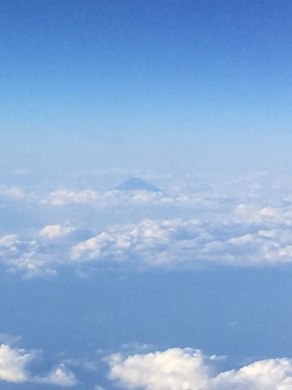 ตอนอยู่บนฟ้า ใกล้จะถึงเรารีบช่วยกันมองหาฟูจิซังกัน แล้วก็จริงๆด้วยเราเห็นด้วยตาเลยค่ะ ยอดเขาฟูจิโผล่มาเหนือก้อนเมฆ สุดยอดเล้ยยยยย