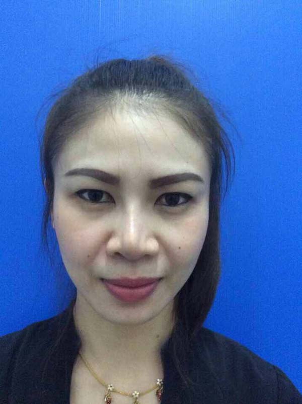 ส่วนหน้าผากที่แบนและเป็นแอ่งตรงกลาง คุณหมอก็แนะนำว่าควรจะทำให้มีโหนกหน้าผากนิดนึง จะได้รับกับจมูก เพราะว่าเวลามองจากด้านข้างแล้วจมูกโด่งสวยงาม แต่หน้าผากแบน ก็จะดูแปลกๆ จะต้องเสริมให้มีโหนกหน้าผากและให้มีแอ่งกลางหน้าผากที่ตื้นขึ้น ไม่ได้ใช้ซิลิโคนนะคะ แต่ใช้วิธีฉีด Fat เอาไขมันของเมย์เองมาฉีดที่หน้าผากแทนค่ะ ธรรมชาติปลอดภัยด้วย
